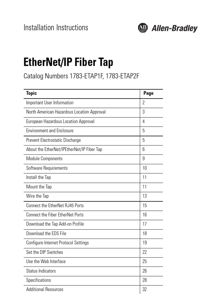 Rockwell automation publication 1783 in003d en p january 2019 3 stratix 2000 ethernet unmanaged switches environment and enclosure this equipment is intended for use in a pollution degree 2 industrial environment in overvoltage category ii applications as defined in eniec 60664 1 at. Catalog numbers may be followed by a k to indicate a conformal coating option. Stratix 2000 switches 1783 us stratix 2500 switches 1783 lms stratix 6000 switches 1783 ems. Ulcsa rated style 1007 or 1569 twisted pair copper appliance wiring material awm wire 63 m m025 in 05 mm 002 in strip length ground connection 4 mm2 10 awg solid or stranded. Protection for the 1783 etap is ex na iic t5 gc and the type of protection for the 1783 etap1f and 1783 etap2f is ex na iic t4 gc according to en 60079 15. Ethernetip network configuration user manual author.