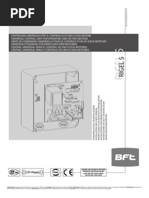 I have put the earth into from motor 1 into 5 and blue into 4 and brown into 6 and the same for motor 2 but they open but not close. 3 comments on bft rigel 5 control board manual p kelly says. Page 9 18 rigel 5 ver. 44 161 456 0456 f. Be sure to check us out on social media. Removable terminal blocks are all colour coded for ease of visibility whilst prewired jumpers will save you considerable time and effort.