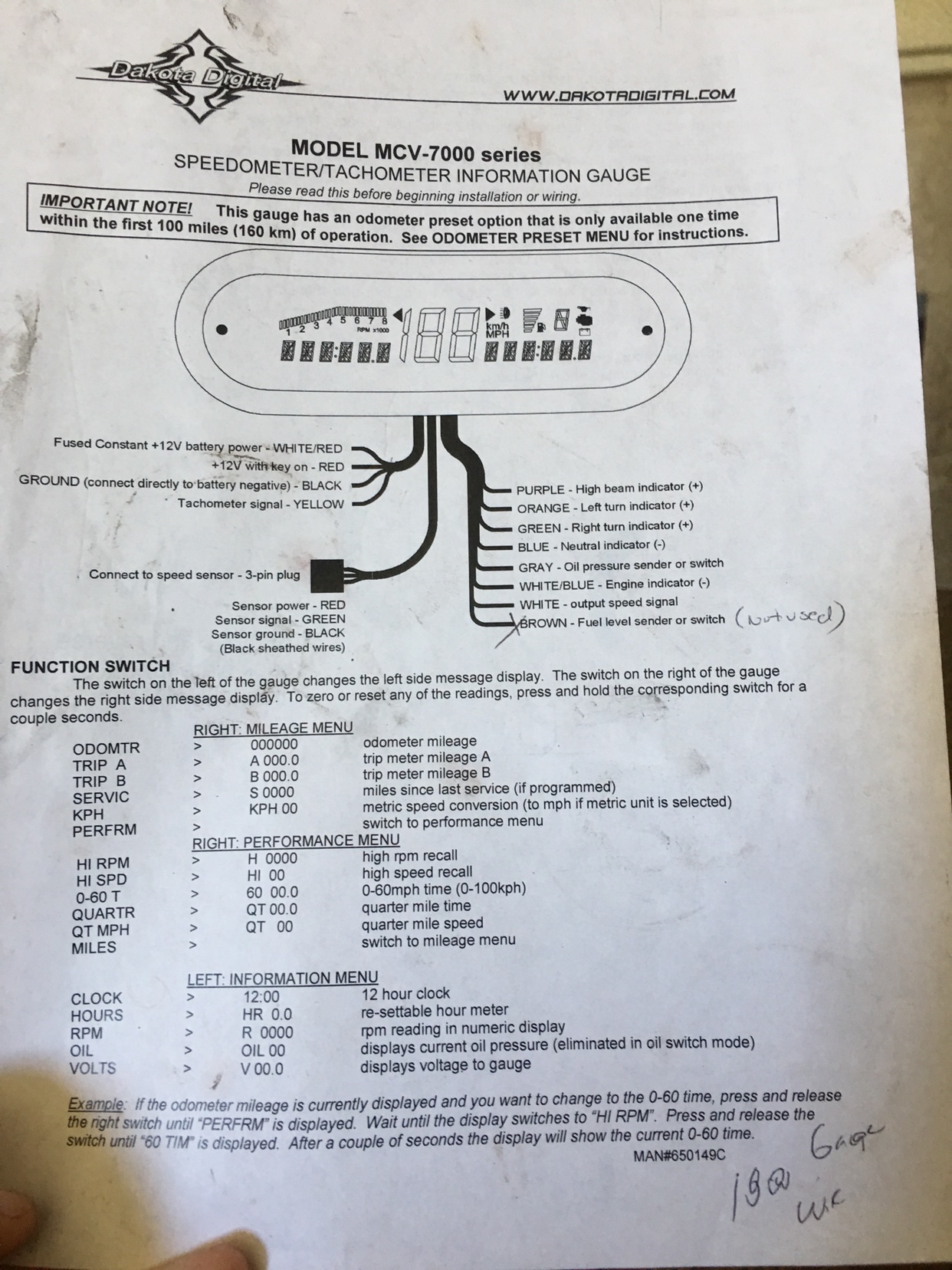 Odyssey series ii mini speedometer mph. Do not use the vehicles original speedometer cable. You may have to consult a vehicle service manual or wiring diagram to determine wire color and location. 3 12 digital gauge for 04 13 sportster 04 11 dyna and 08 10 rocker mlx 3012 3 12 digital gauge for 11 18 softail blackline 13 17 breakout 12 17 dyna 14 up sportsters and 2018 up fatbob softail. Dakota digital vhx gauge system this guide is designed to get you up and running quickly with the minimal amount of options installed. Dakota digital manufactures digital instrumentation and accessories for the automotive motorcycle and car audio enthusiast.