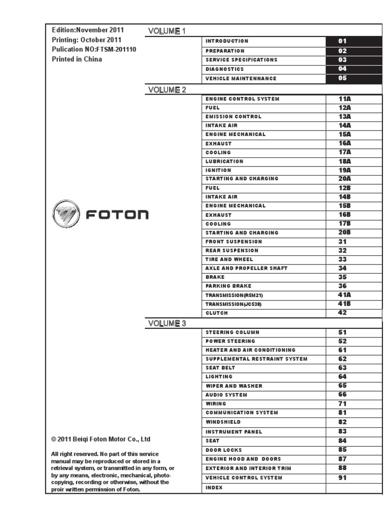 18 Foton Trucks Service Manuals Free Download Truck Manual
