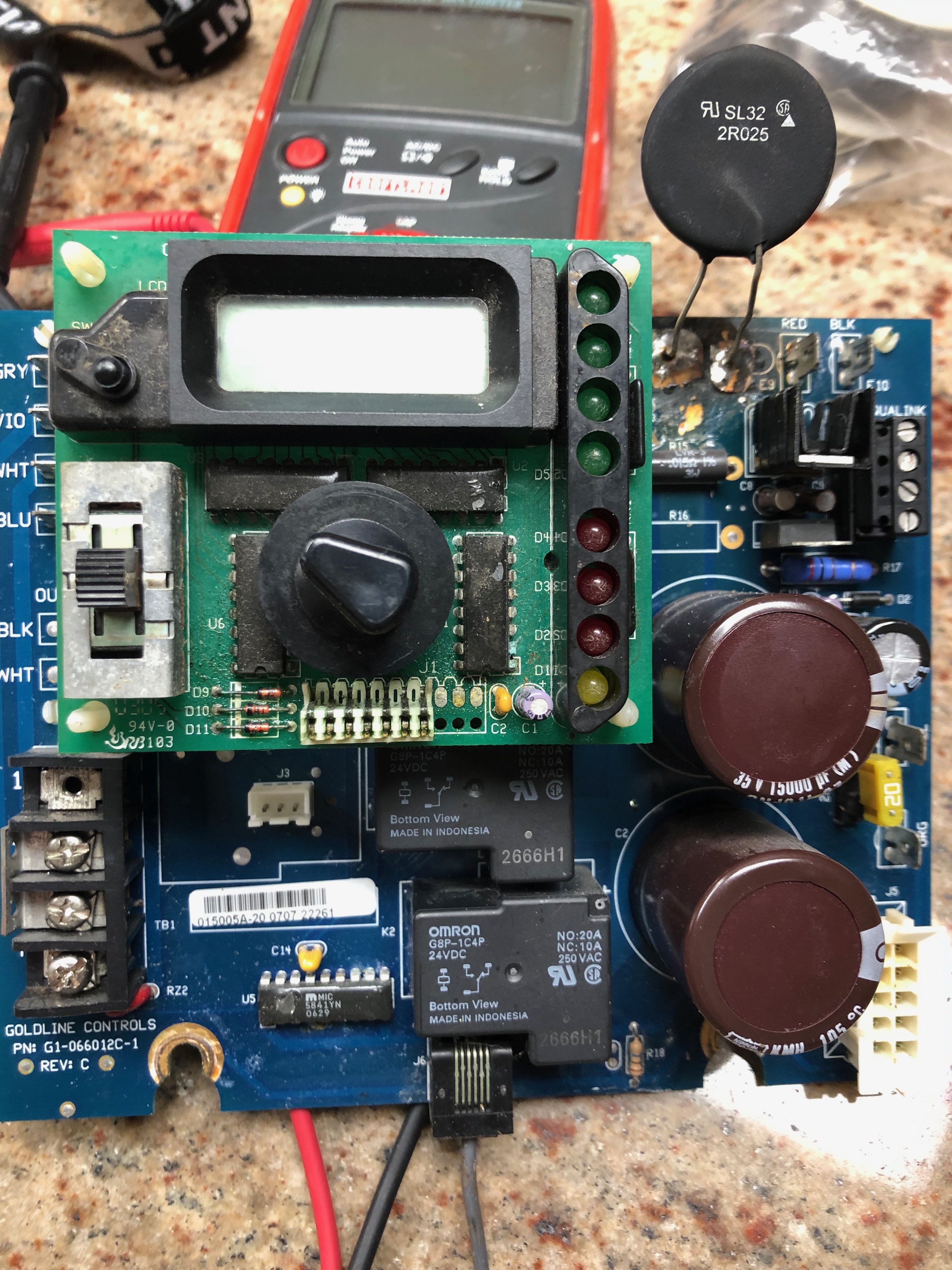 Control box shows lcd display but no leds are illuminated. If this is a new install or the circuit board was recently replaced verify that the board is set up to receive the correct voltage. Wiring wiring power must be shut off at the circuit breaker before performing any wiring. This is the board that typically goes bad if your unit is struck by lightning. I have a newer panel that went bad and want to go back to using an old circuit board that i already have g1 066008j 1.