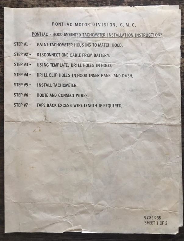 70 Gto Hood Tach Wiring Diagram Wiring Diagram