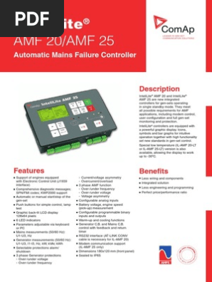 Compact gen set controller for single genset operating in standby or prime power modes. Comap products single gen set controllers intelilite intelilite nt amf 20. Auto mains failure amf gen set controller intelilite nt amf 9. Intelilite nt amf 20. Special low temperature il amf 20 lt or il amf 25 lt version is also available allowing the display to work up to 300c. Full gen set monitoring and protection.