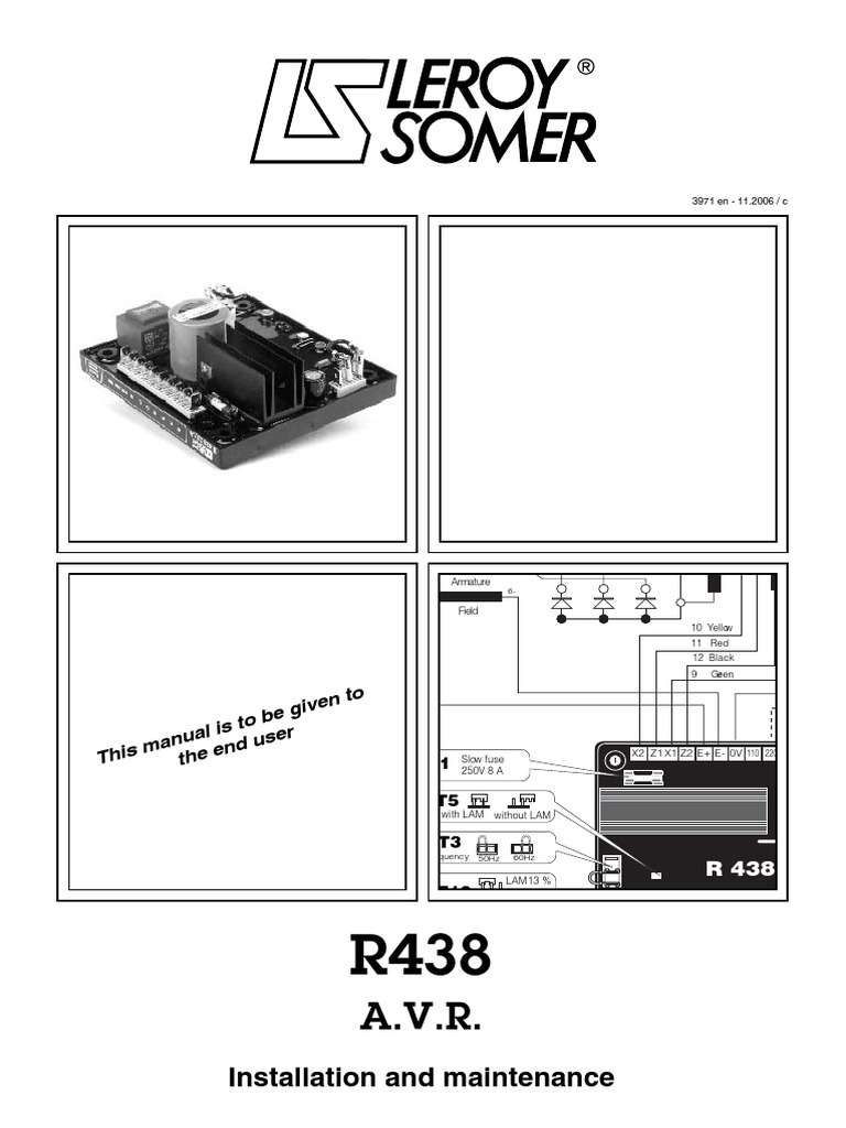 Optional operating modes. A wide variety of leroy somer avr r options are available to you leroy somer generator avr r r r r r r. Potentiometer p2. Page 14 leroy somer installation and maintenance 3972 en 022008 d r448 r448 v50 avr. 31 electrical checks on the avr check that all connections have been made properly as shown in the attached wiring diagram. V installation and maintenance.