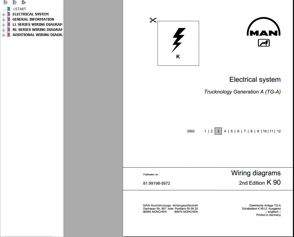 Man tg a wiring diagramspdf. 65 additional wiring diagrams and wiring harness drawings 66 fuse power for additional consumers 67 type of electrical conductors and relays to be used 68 lighting installations 69 interference suppression 610 electromagnetic compatibility 611 interfaces on the vehicle 612 body fi ttings. Man tgs tgx wiring diagrams electrical system k100 2nd editionpdf. Traning common rail for man trucks 10122013. Man l2000 repair manual rus 10122013. Some man l2000 m2000 f2000 operator service manuals pdf above the page.