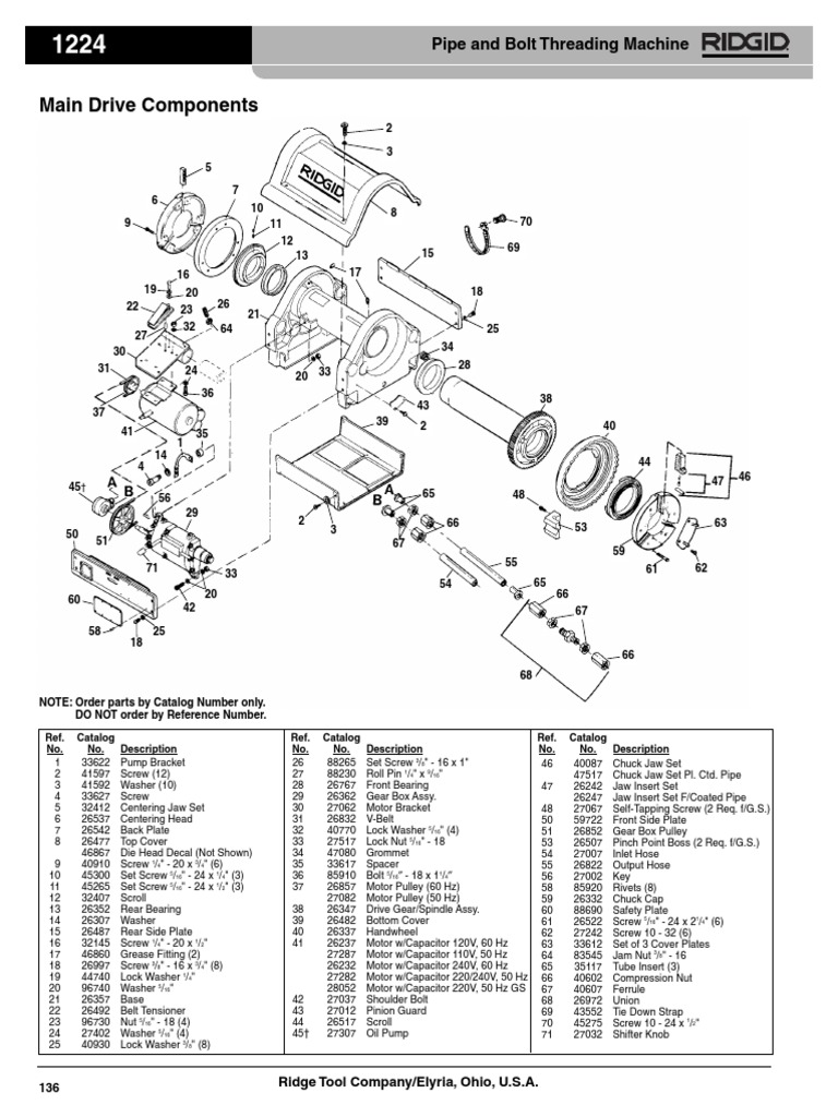Download the ridgid parts catalogs for machine and power drives hand tools and drain cleaning and diagnostic equipment. Description 1 40355 feed screw 2 40360 jaw clamp incl. Portable power drive 700 ref.