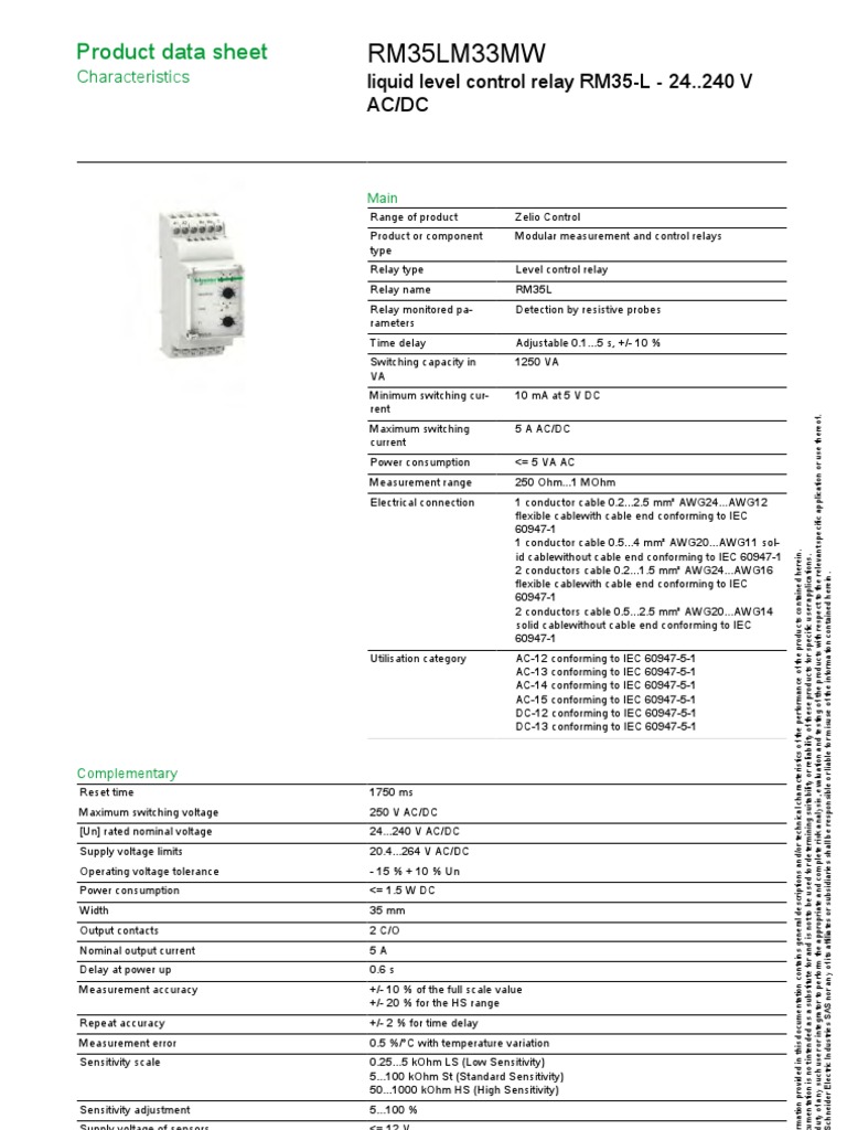Rm35lm33mw wiring diagram. Level 11 1211 14 21 2221 24 output relays connections refer to connections and schema relay status. Maximum of 100 ms. Rm35lm33mw modular liquid level control relay 5 a 2 co 24240 v acdc. Control of one level empty function t on tt time delay after crossing of threshold adjustable on front panel. Catalog number rm35lm33mw rm35lv14mw rm35ba10. Level 11 1211 14 21 2221 24 output relays connections refer to connections and schema relay status.