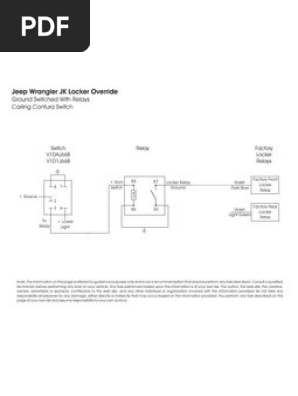 The new jk is very dependent on its computer system and the locker work around is not nearly as simple as a hot wire. The diagram is for a locker switch with an indicator light to show when it is actually locked. This modification is based on this wiring diagram. Since i will not need a locker in 2wd as it has posi i am going to jump the wires so i can operate the lockers in any 4wd position. 100 drive to each wheel when the unit is locked up. Rubicon axles have an internal switch for that purpose.