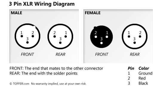 A wiring diagram is a streamlined conventional photographic depiction of an electric circuit. The above diagram shows you the pin numbering for both male and female xlr connectors from the front and the rear view. Pin 2 on the xlr is hot and carries the positive going signal whilst pin 3 is cold and provides the return. How to wire an xlr connector balanced a balanced system is used in pro audio with an overall screen covering a twisted pair.