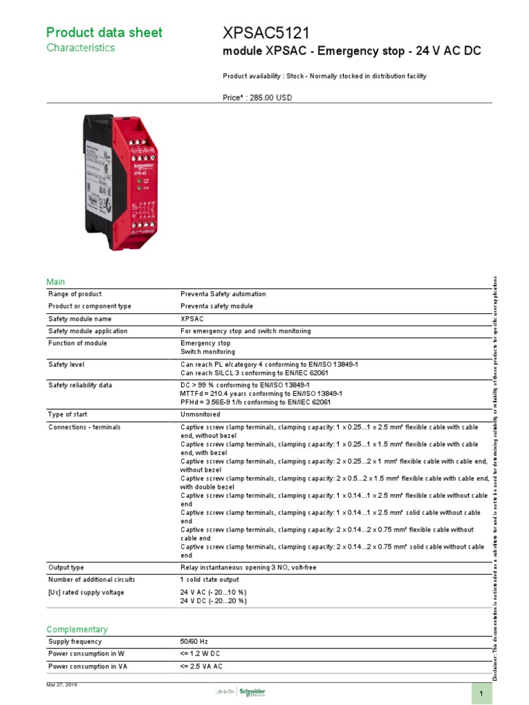 Stock normally stocked in distribution facility. Module xpsac emergency stop 24 v ac dc show more characteristics lifecycle services. View related products from the series. Customers also buy these products.